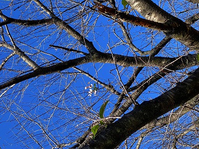 10月も末だったのに葉の落ちた枝に桜の花が数輪咲いているものも発見。