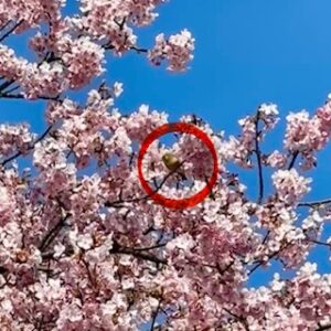 ちょうど満開で、めじろもたくさんきていて、